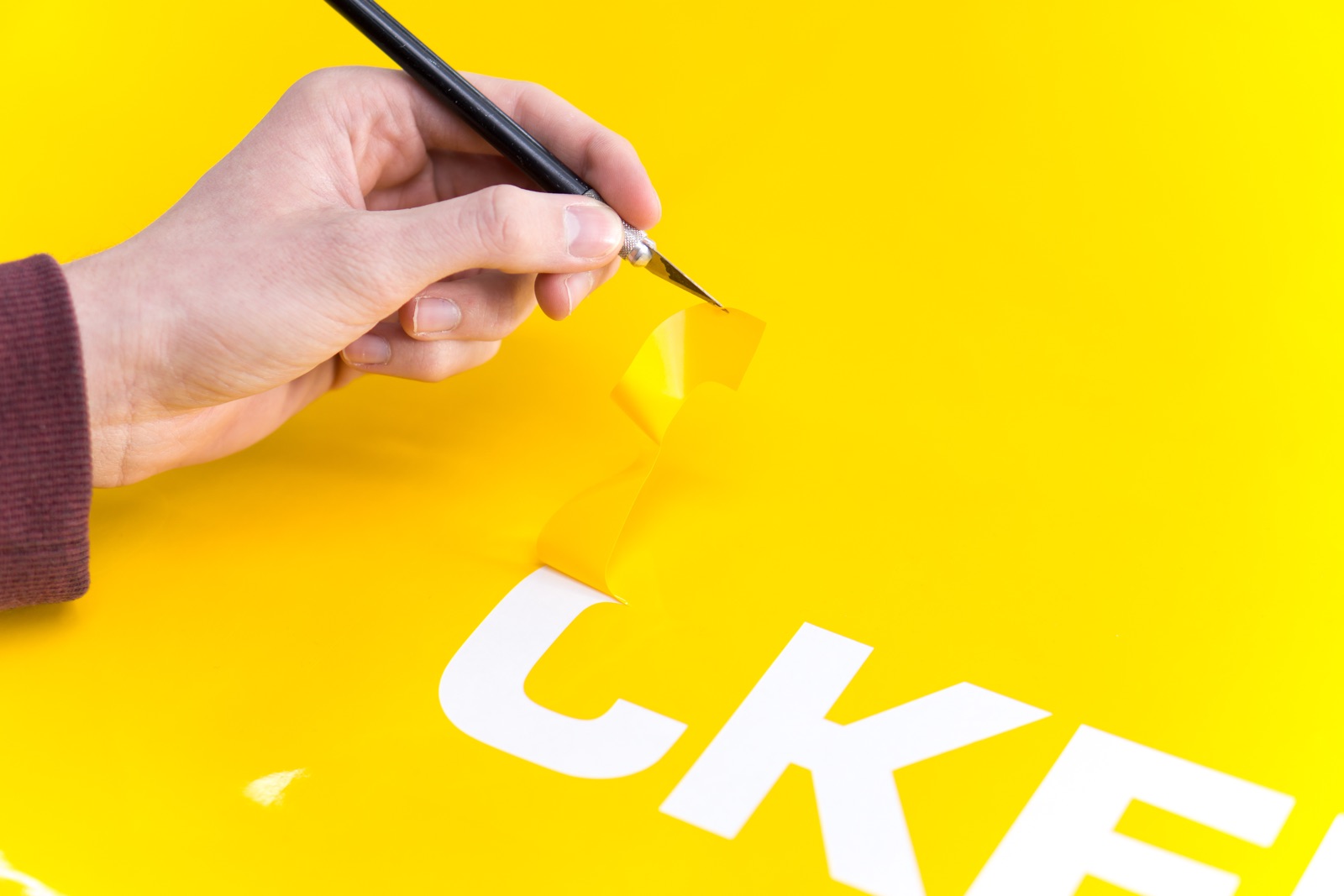 Eine Rakel ist ein Werkzeug um Folien glatt zu streichen.
